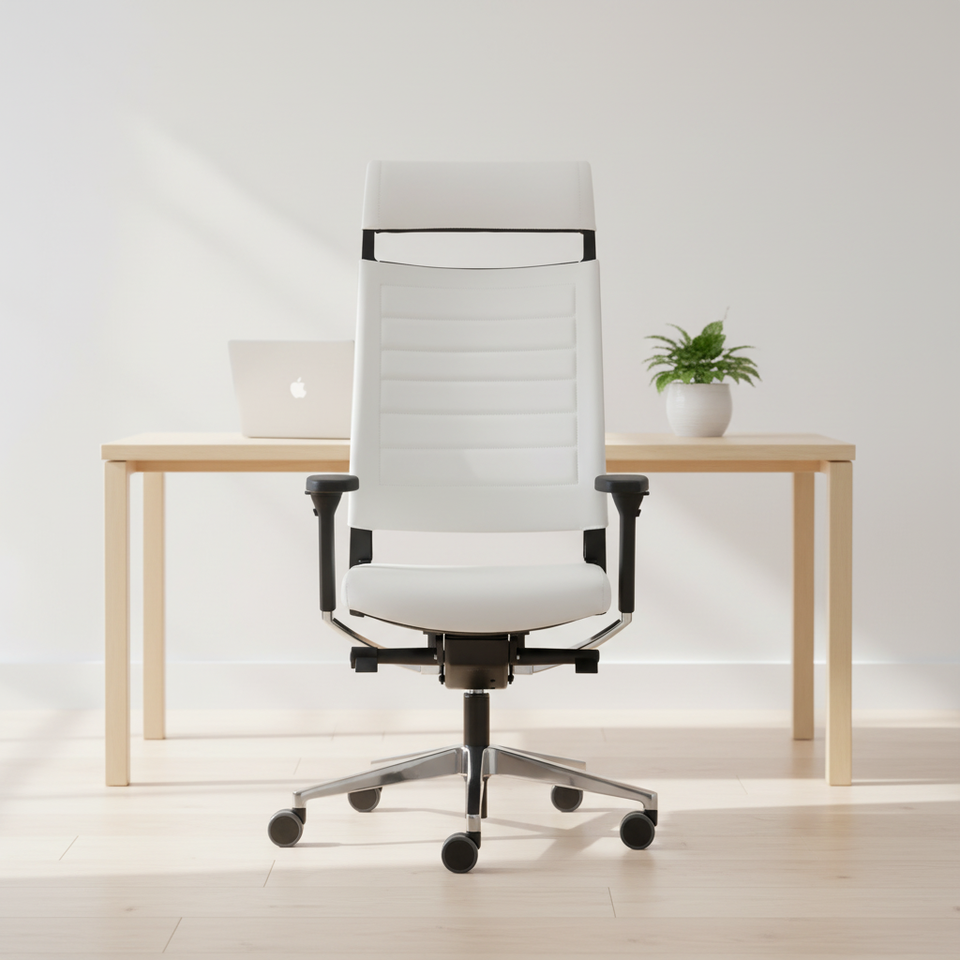 Fully Upholstered Expo 15 Leather Armchair Medium Back Adjustable Lumbar Support Swivel Height-Adjustable Seat Armrests-Modern