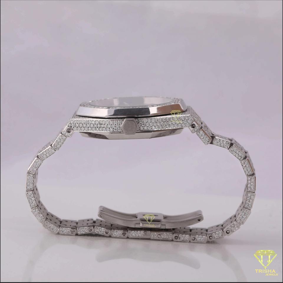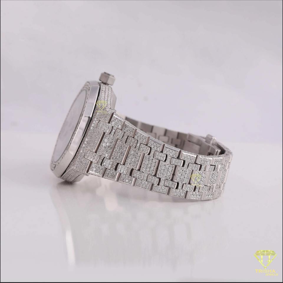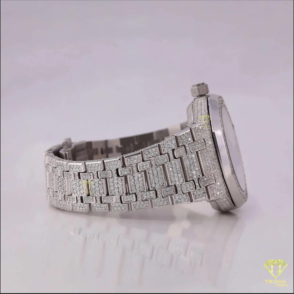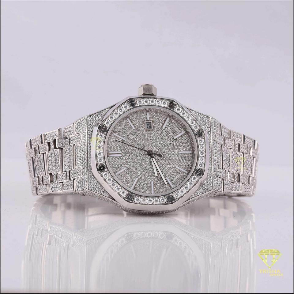 Hot Sale Fully White Full Iced Lab Grown Diamond Watch Classic Date Stick Number Dial Vintage Style Stainless Steel for Sale