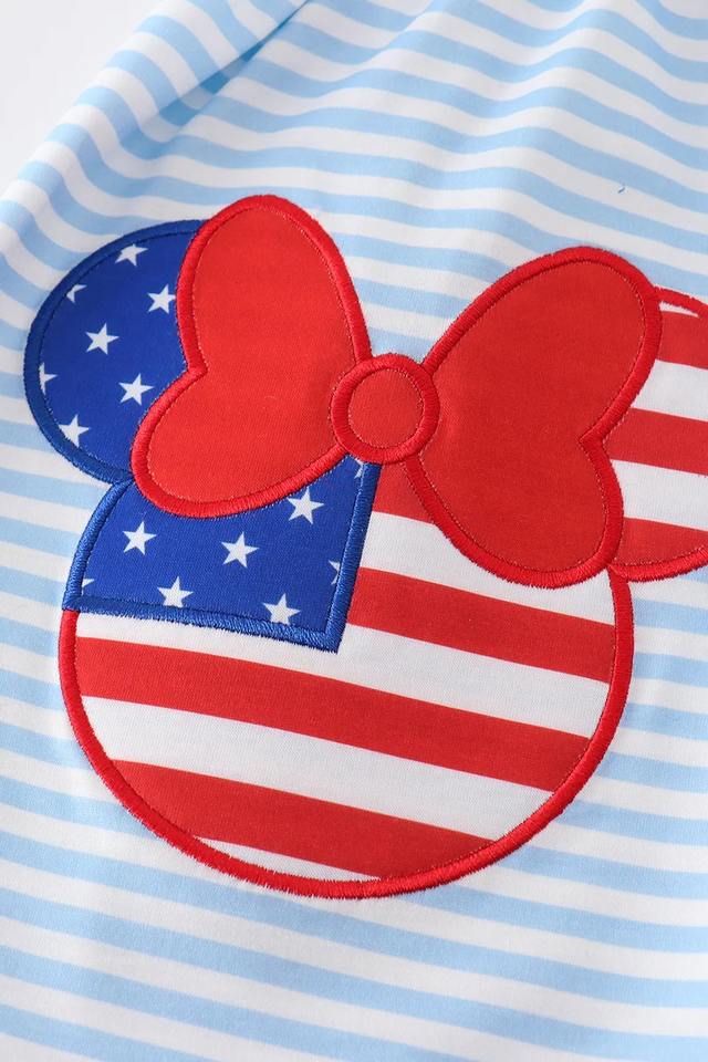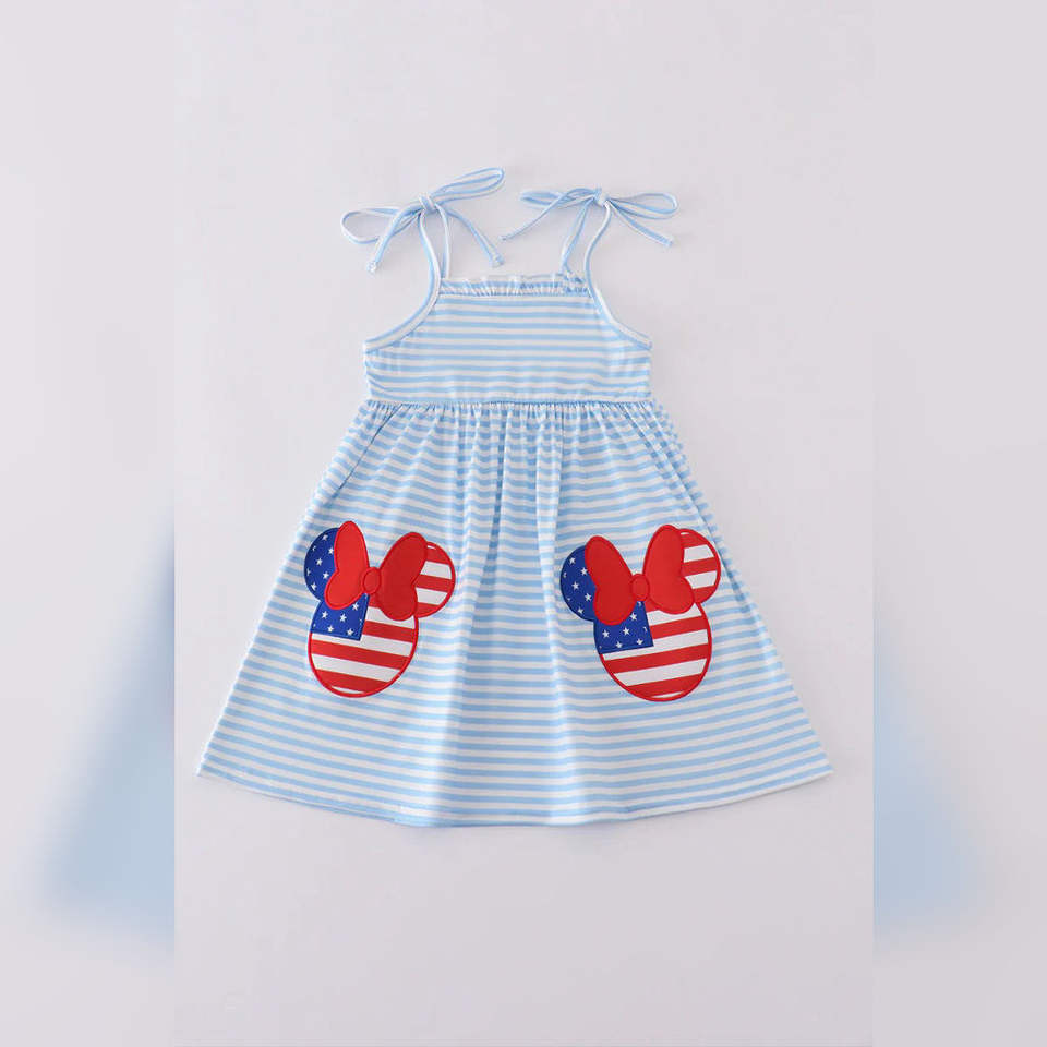 Fun Cotton Toddler Dress for Girls Blue Character Applique Stripe Outfit Cartoon Theme Baby Dress for Play or Parties