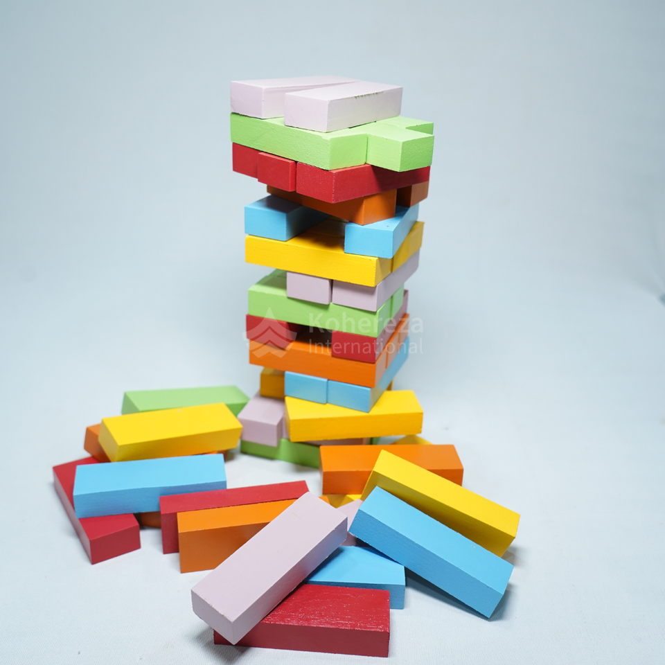 Fun & Educational Handcrafted Colorful Wooden Tower Blocks Construction Toy Set for Kids & Families-Stacking & Balancing Game
