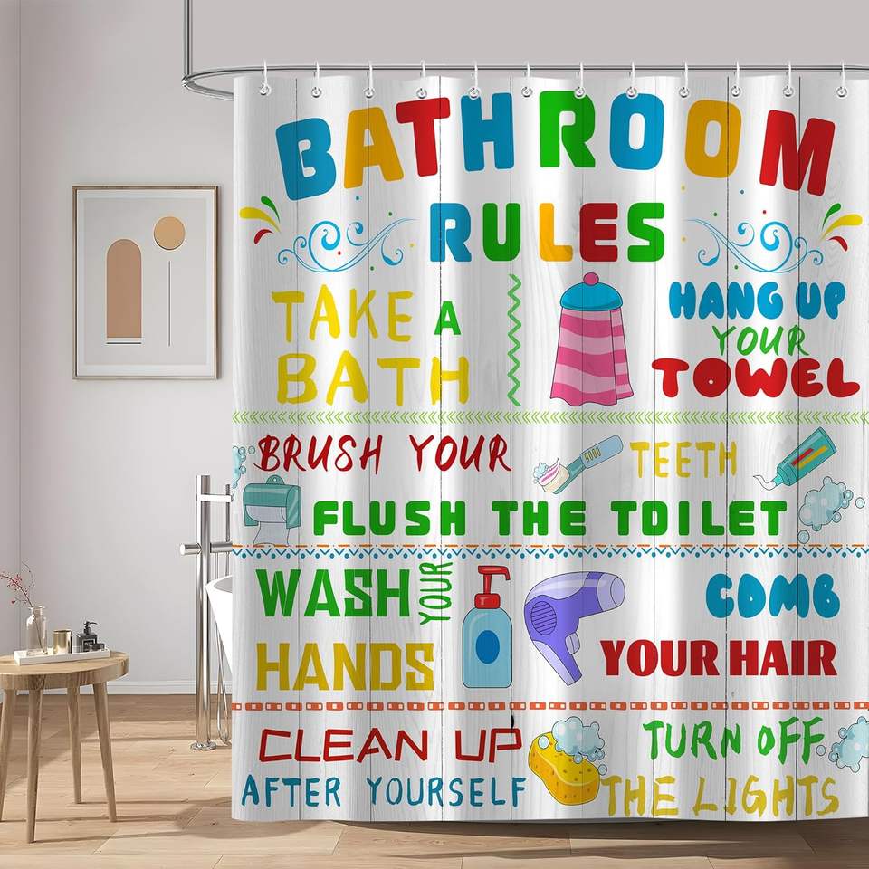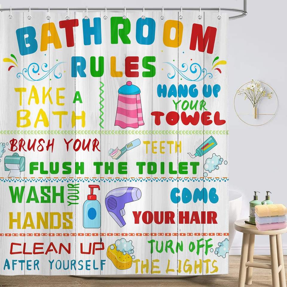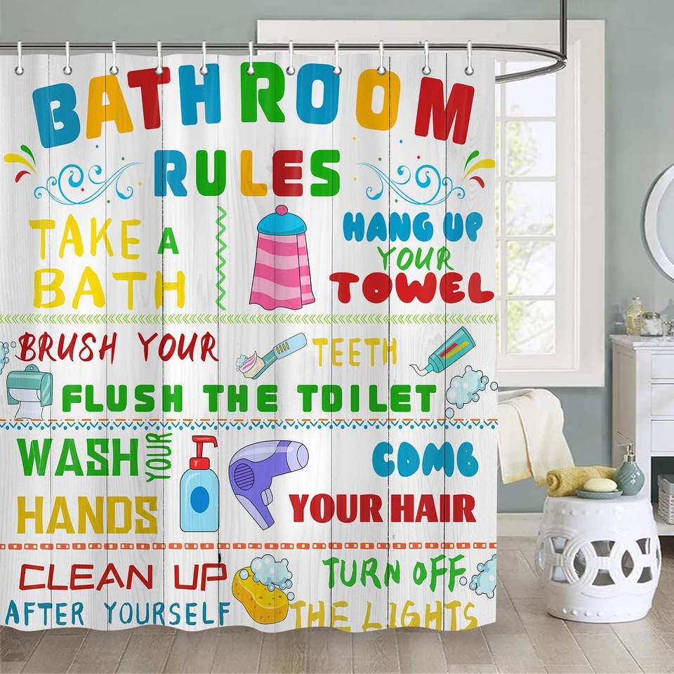 Fun Shower Curtains Cute Colorful Pattern Custom Polyester Bathroom Home Decor for Funny Bathroom Rules
