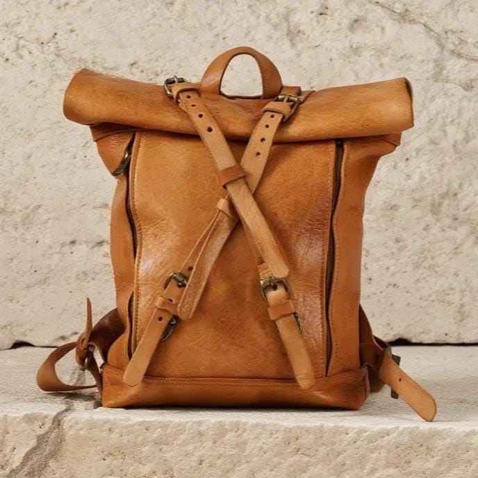 Leather Roll Top Backpack
