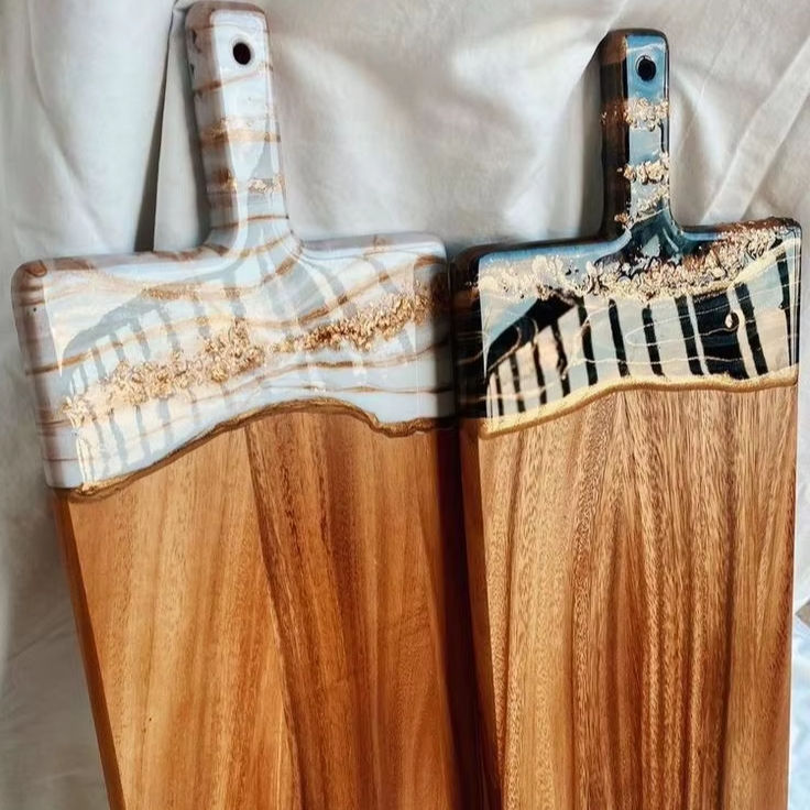 Functional and eye catching resin and wooden chopping board created for kitchens that need both durability and visual interest
