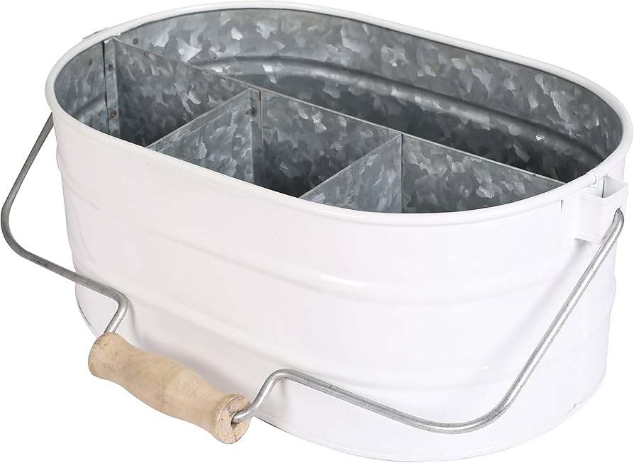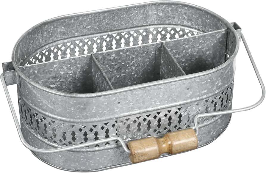 Functional galvanized utensil caddy for organizing kitchen cutlery with vintage finished for rustic dining table decor