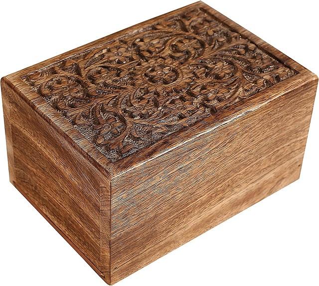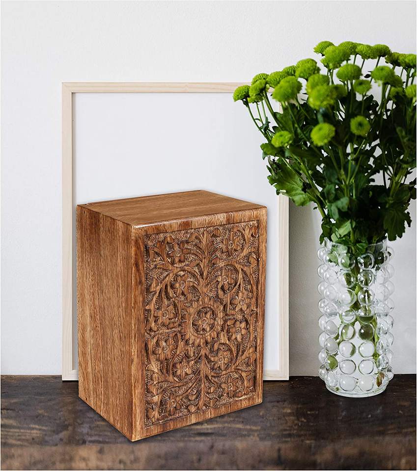 Funeral Cremation Urn Ashes with Beautiful Handmade Carving in Centre- Large Natural,Urns for Human Ashes Adult Wooden,Wooden Ur