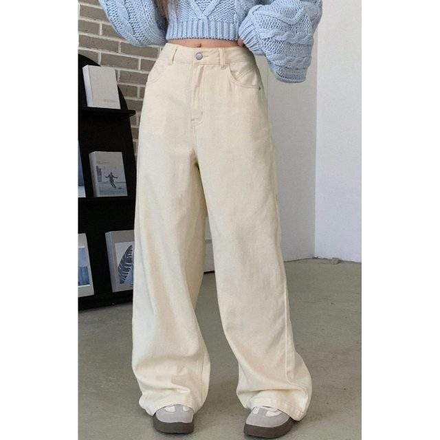 Funky Luxury Fashion Women Wide Leg Cream Jeans High Rise Loose Fit Eco-Friendly Fabric Denim Street Size 26-40 OSCA
