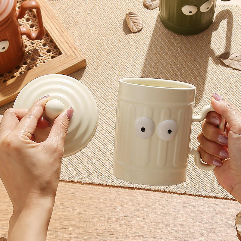 Funny Ceramic Mug With Lid Cartoon Design For Home Office Gift Chaozhou Made