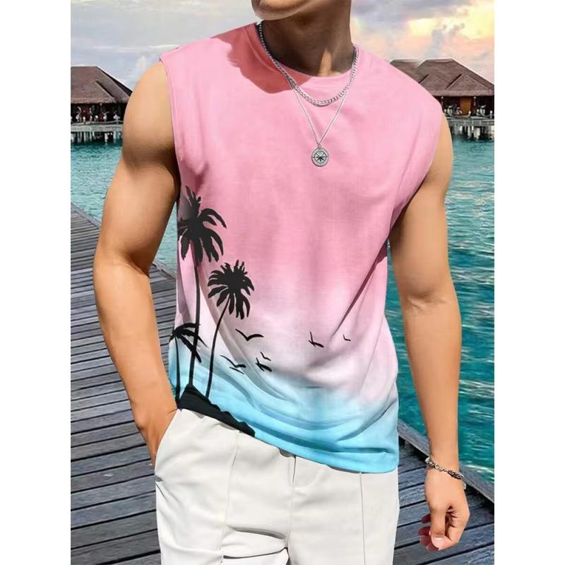 Funny Coconut Tree Pattern Tank Tops For Men Colorful Gradient Plants 3D Printed Tees Summer Casual Loose Street O-Neck Vest Top