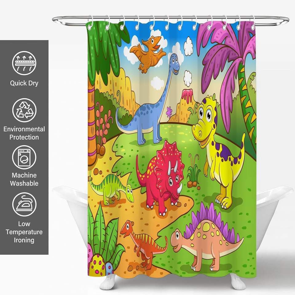 Funny Dinosaur Shower Curtain Cartoon Animal Bath Decor with Hooks Cute Polyester Fabric Home Bathroom Decor in Stock