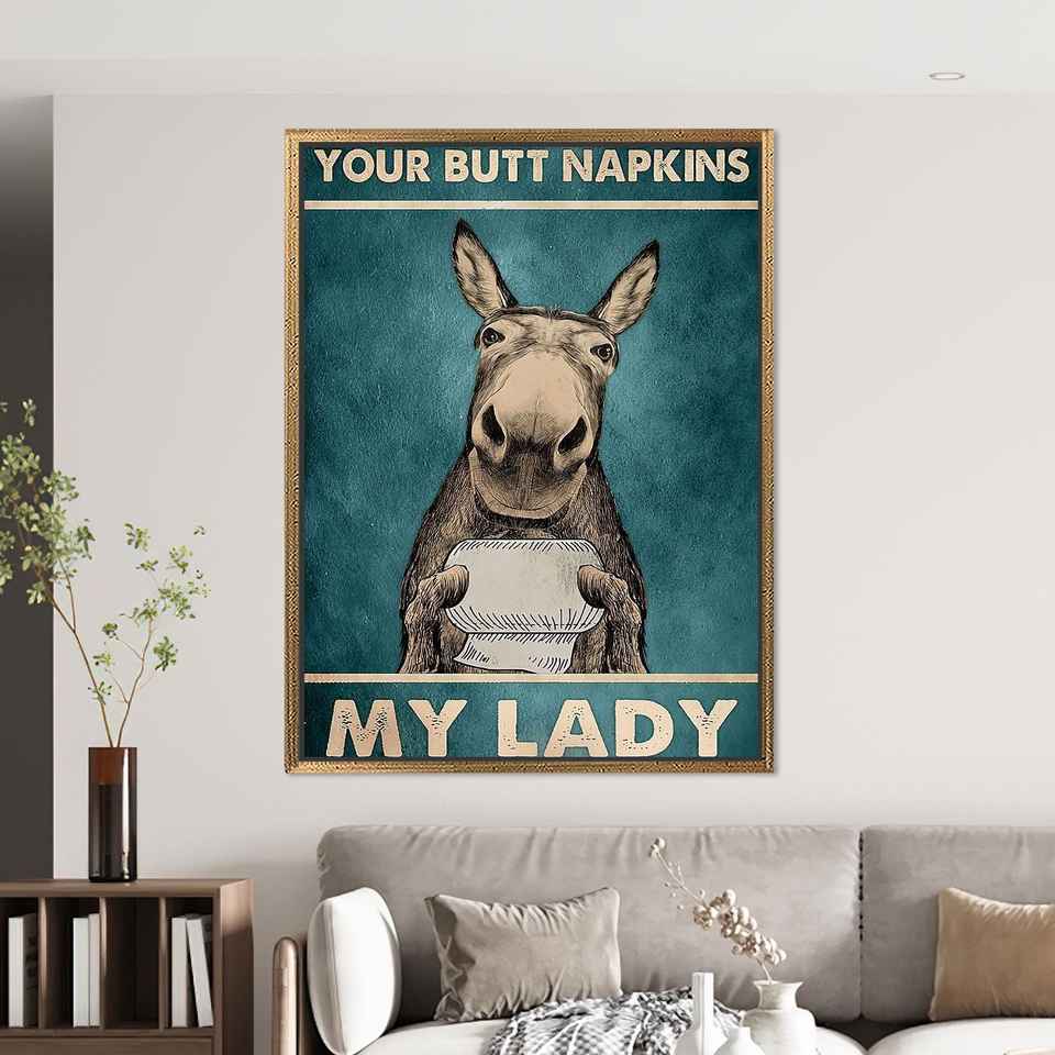 Funny Donkey Bathroom Canvas Art, Rustic Farmhouse Humor Print,Gold Framed