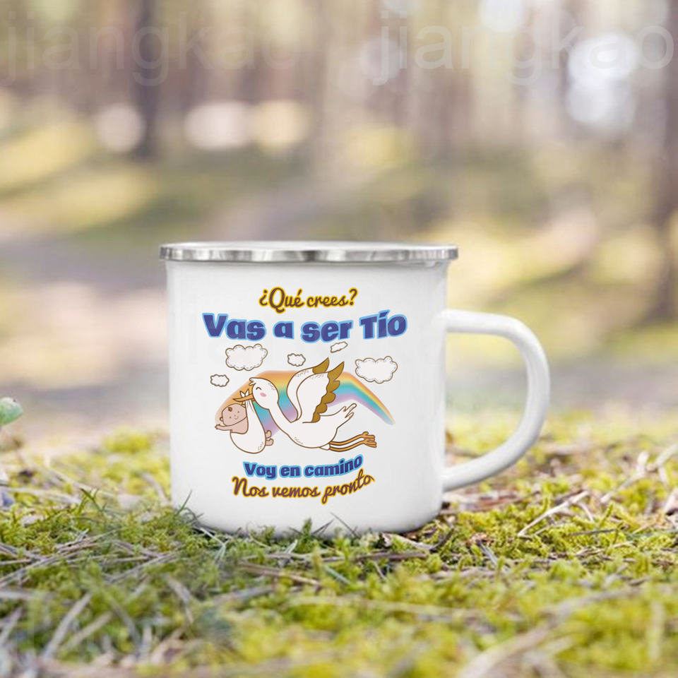 Funny French Print Mugs Pregnancy Announcement Coffee Cups Drinks Water Cup Enamel Mug Gift for Dad Aunt Uncle Grandpa Grandama