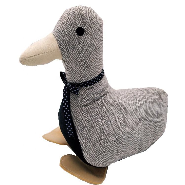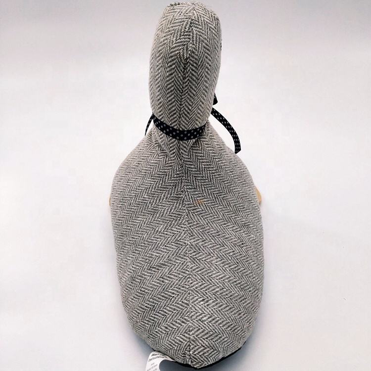 Funny Grey Herringbone Fabric Stuffed Sand Bag Decorative Duck Animal Door Stop for Home Decoration