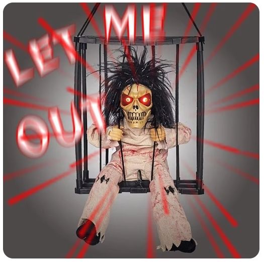 Funny Halloween Prisoner Cage Ghost Vocalize Luminous Skeleton Plastic Figurine Electric Skeleton Toy Horror Party Prop