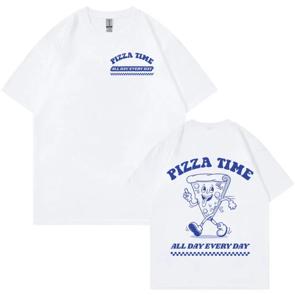 Funny Pizza Time All Day Every Day Cartoon Retro T Shirt Men's Women Cute Aesthetic Fashion T-shirt Casual Oversized Cotton Tees