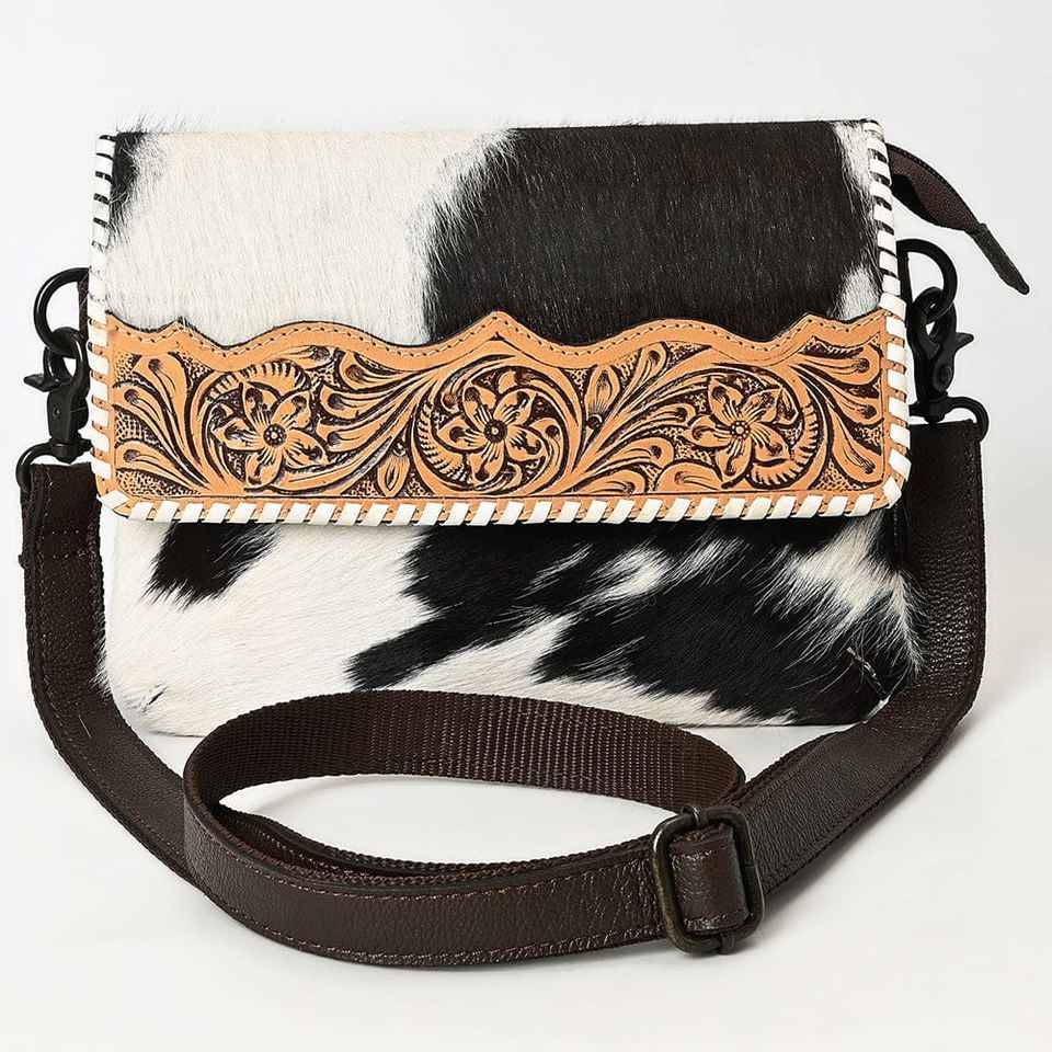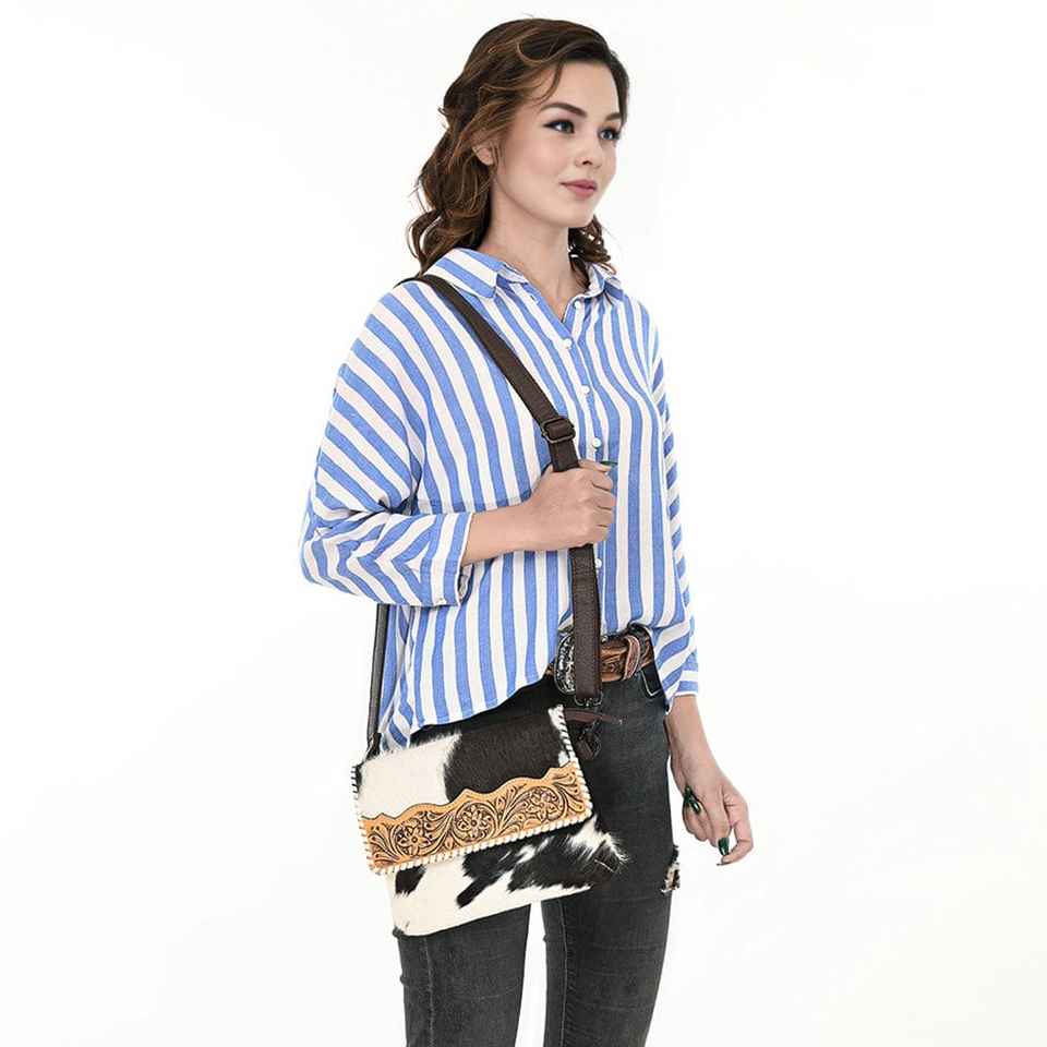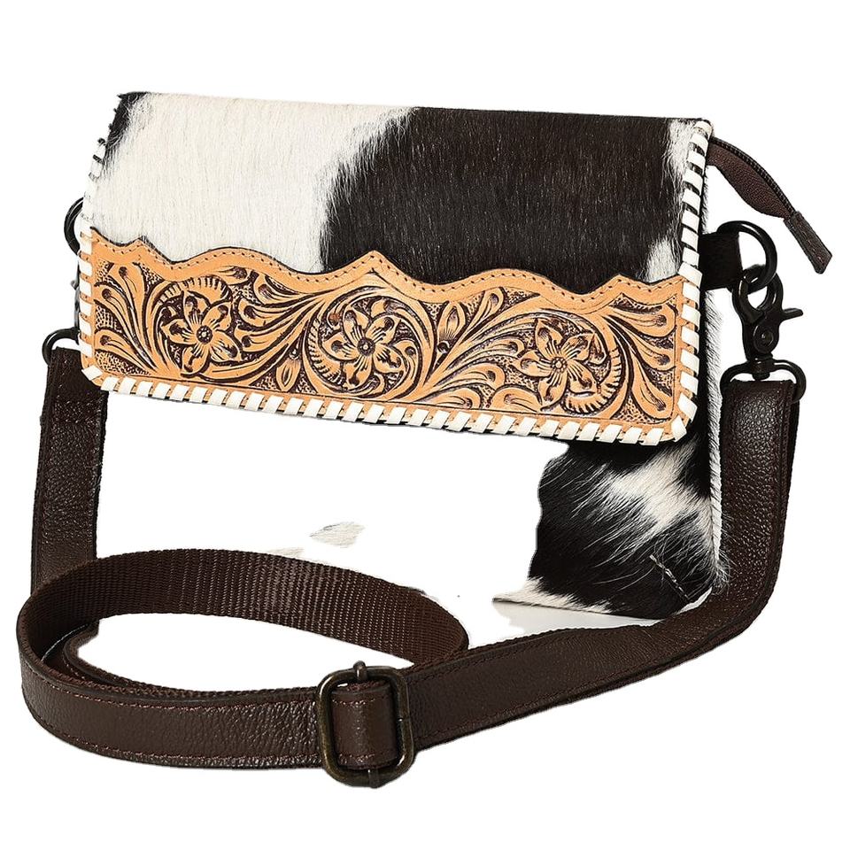 Fur Leather Sling Bag Bohemian Stylish Hand Tooled Carving Purse Bags for Women's Multi Use Hand Crafted Western Bag
