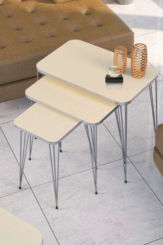 FurnatureDesign 3-Piece Modern Coffee Tea Table Set Silver Metal Legs Rectangular Nesting Tables Home Furniture Easy Assembly