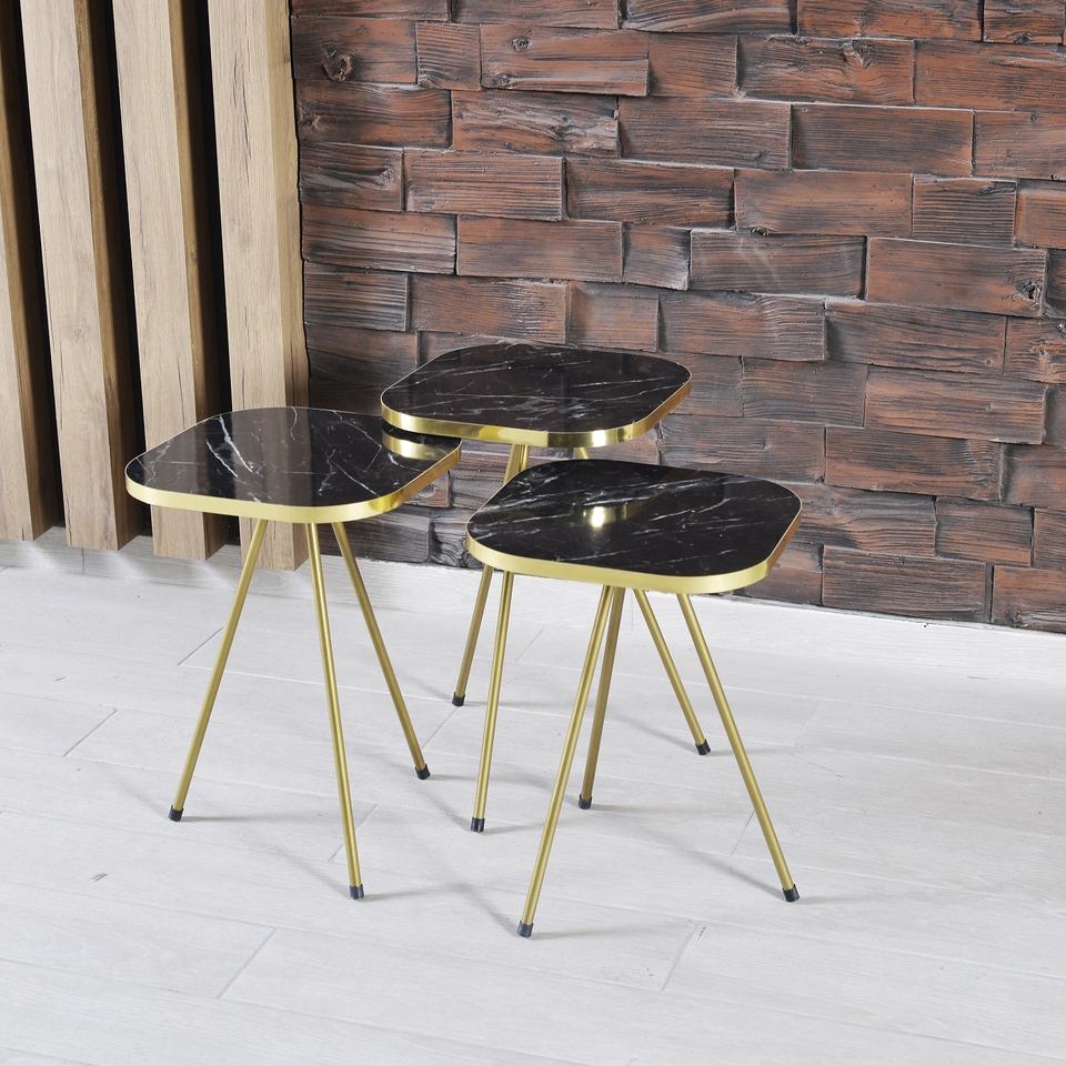 FurnatureDesign Modern 3-Piece Nesting Tea Table Set Square Coffee Table with Golden Metal Leg Factory Price Direct