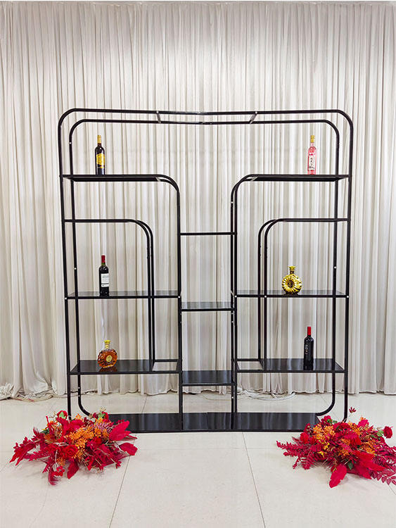 Simple Style Metal Bookcase and Bar Stool Black Gold Wedding Counter Wine Rack Furniture Standing Accessory