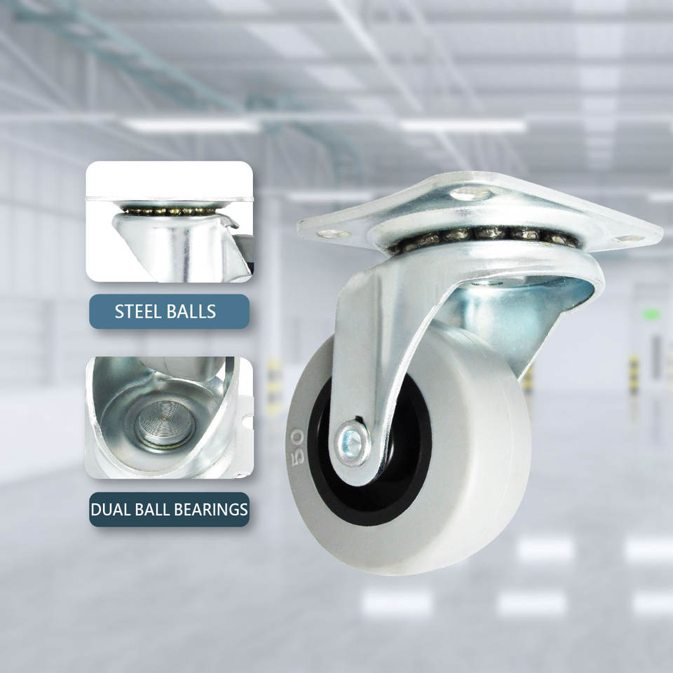 Furniture Caster 2 Inch Swivel TPR Rubber Wheels Plate Mounting