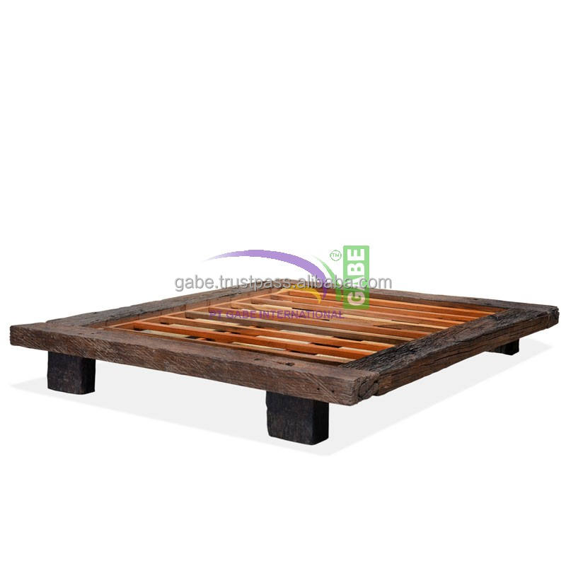 Furniture, Low Bed ,Japanese Style King Size With Reclaimed Solid Wood