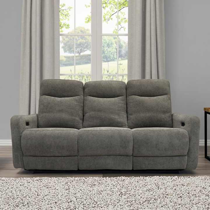 Modern Electric Recliner Sofa with Plastic Frame Fabric Upholstery Ergonomic Design Remote Control Three Seat Living Room Set