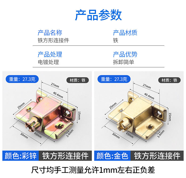 Furniture connection piece corner code square iron three-in-one connection piece lock and key disassembly component