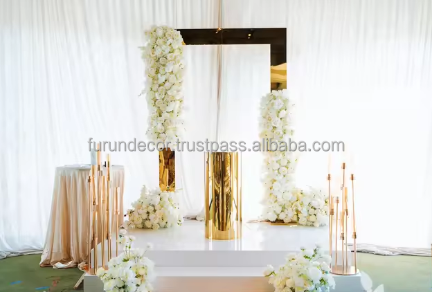 Furun Factory Wholesale Eco-Friendly Durable Stainless Steel Arch Stand Gold Mirror Silver Finish Customizable Width Wedding