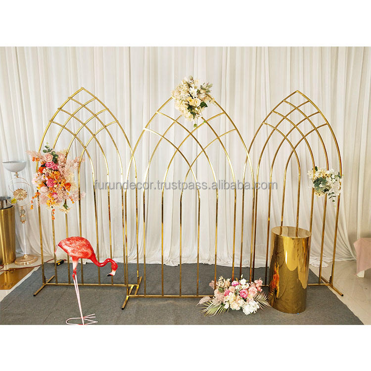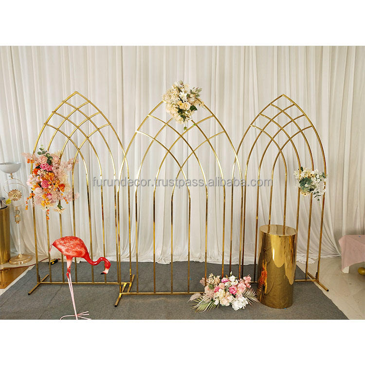 Furun Wedding Supplies Stainless Steel Gold Gate Metal Backdrop Arch Frame Stand Simple Style for Decoration