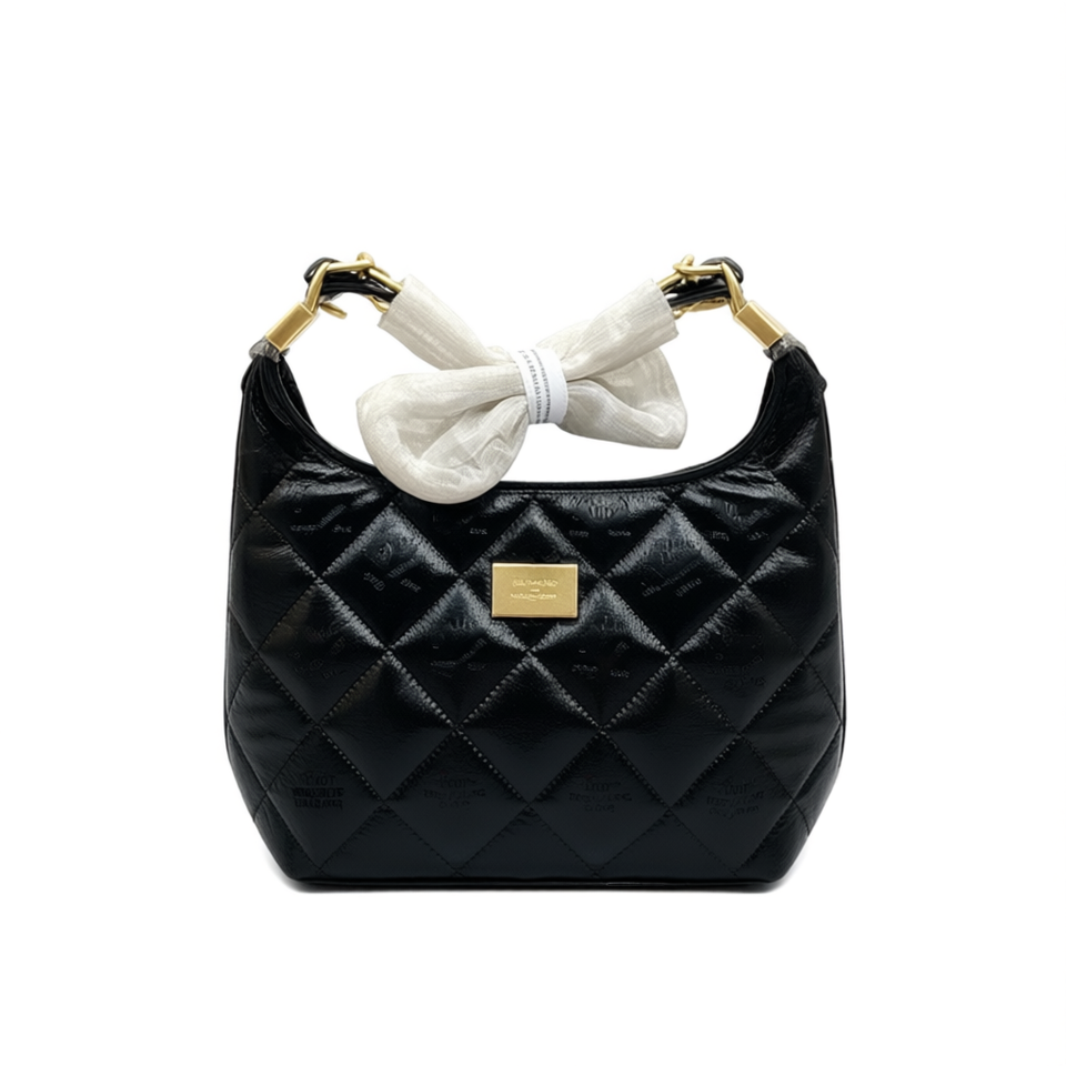 Fzkybag Quilted Shoulder Bag Women Fashion Bow Detail Single Strap Microfiber Leather Handbag Daily Casual Use
