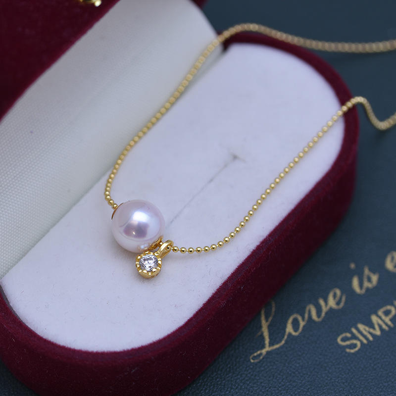 G18 K Gold Zhuji Danshui Edison 10-12mm Round Strong Light Fine Flaws Pearl Perforated Pendant Necklace