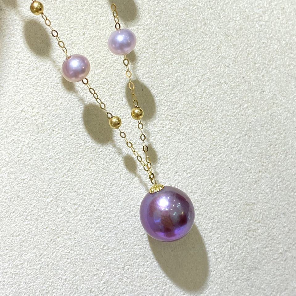 G18k Gold Double Pearl Necklace Versatile High Quality 8-9MM & 10-11MM Natural Round Pearls Perfect Selection