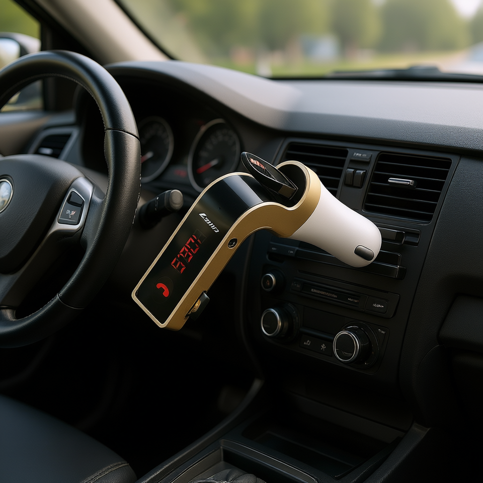 Portable Bluetooth Car MP3 Player with FM Transmitter, Wireless Audio Streaming, USB Charging, Cigarette Lighter Plug, 15M Range