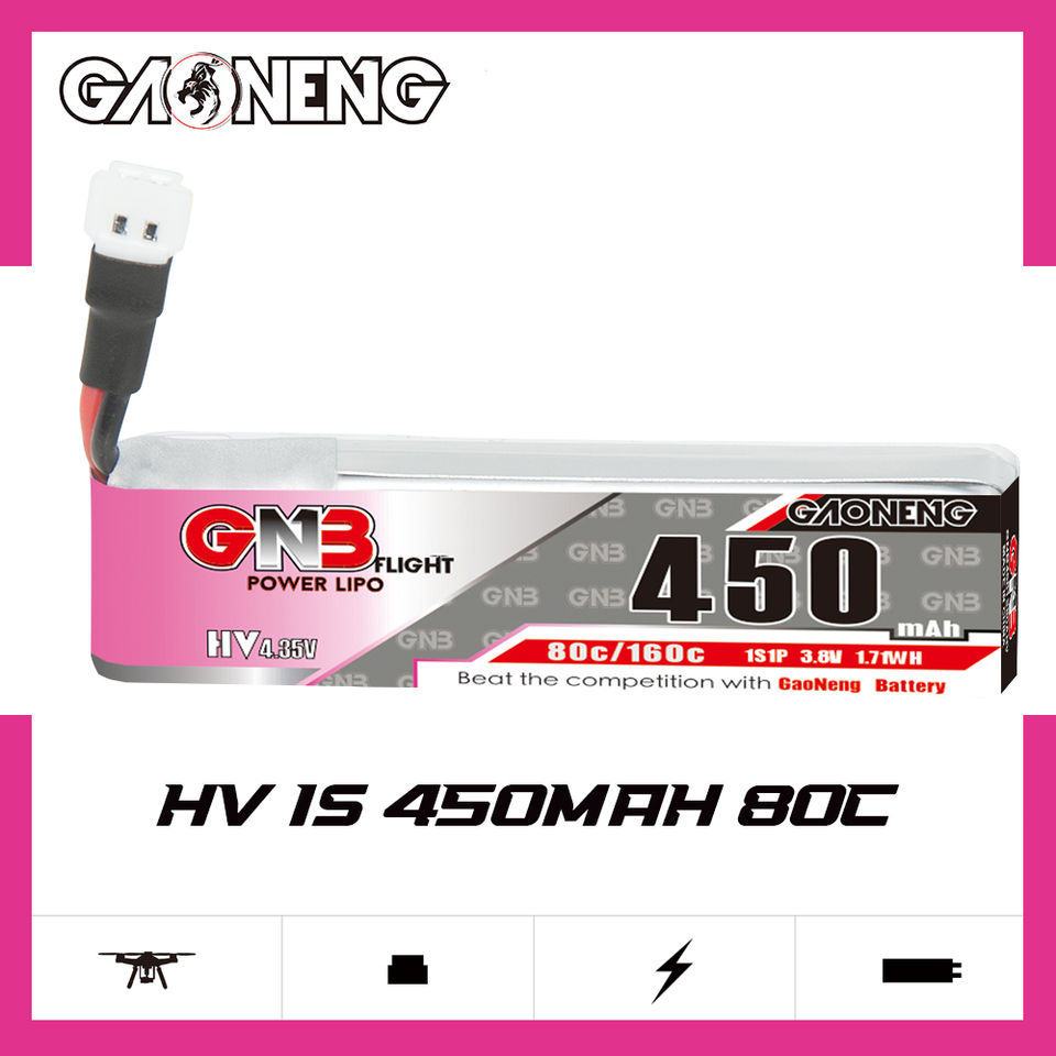 GAONENG GNB 1S 3.8V 450MAH HV 80C Molex 51005 LiPo Battery PowerWhoop MCPX EMAX Tinyhawk Brushless Drone Kingkong Tiny7 Beta75S