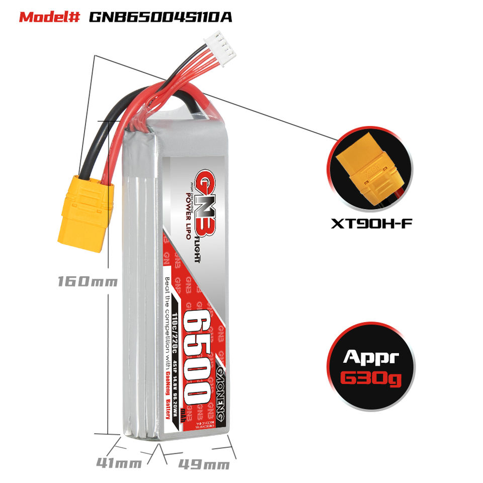 GAONENG GNB 6500mAh 4S 14.8V 110C XT90 RC LiPo Battery 600mm to 700mm Helicopters 800mm Warbirds Align 600 T-Rex 600 FPV Drone