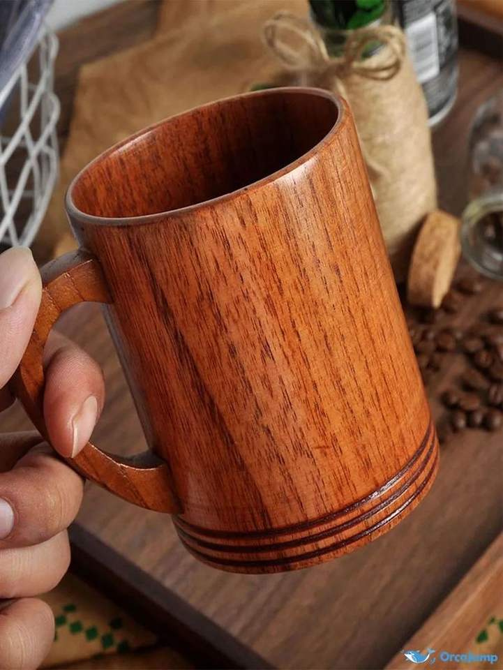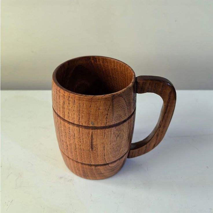 GARDEN SALE WOODEN CERAMIC EXTRA LARGE Viking Drinking Beer Mug with Multiple Shape Handle Natural Wood Colour Mug for