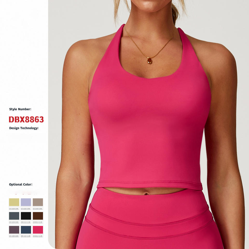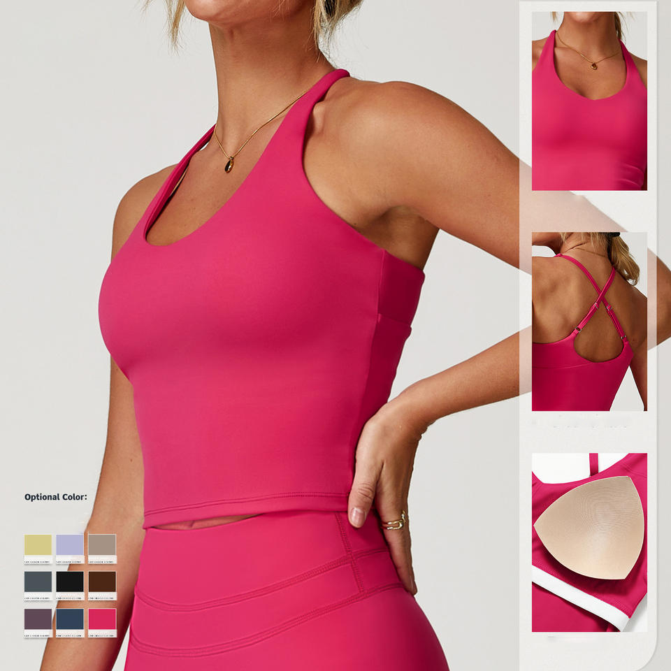 GCWAVECross back yoga vest women's sanded tight yoga top outdoor fitness sports underwear