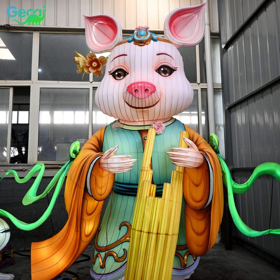 GECAI Outdoor Large 12 Chinese Zodiac Signs Pig Lantern