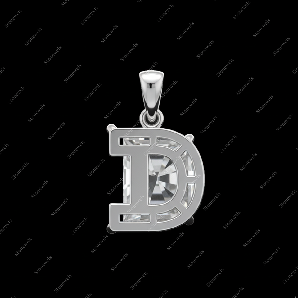 Solid Lab Grown Initial Alphabet Letter D Shape Diamond Pendant