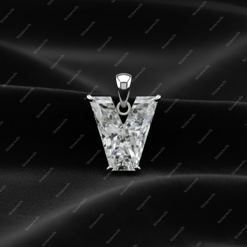 Product Name:Solid Lab Grown Initial Alphabet Letter V Shape Diamond Pendant