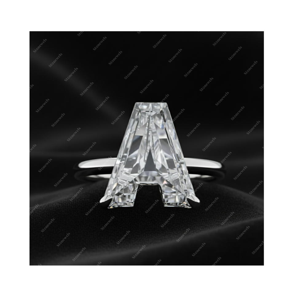 Solid Lab Grown Initial Alphabet Letter A Shape Diamond Ring