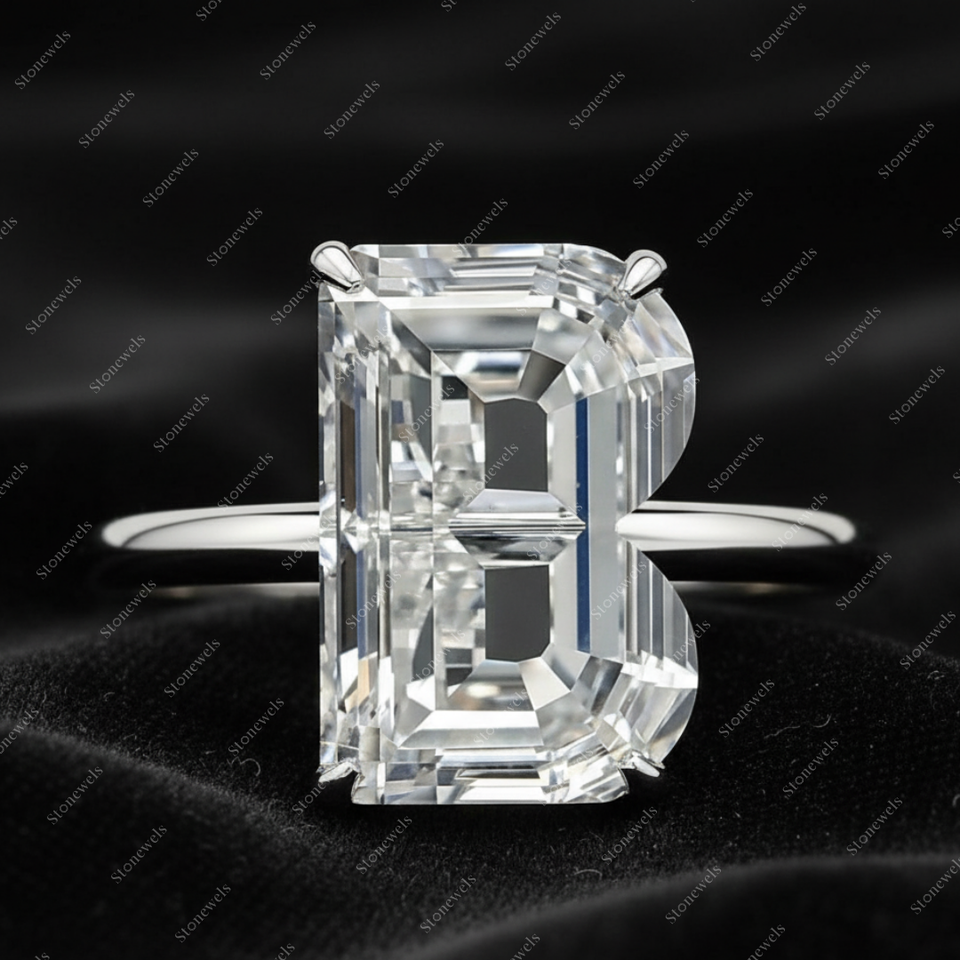 Solid Lab Grown Initial Alphabet Letter B Shape Diamond Ring