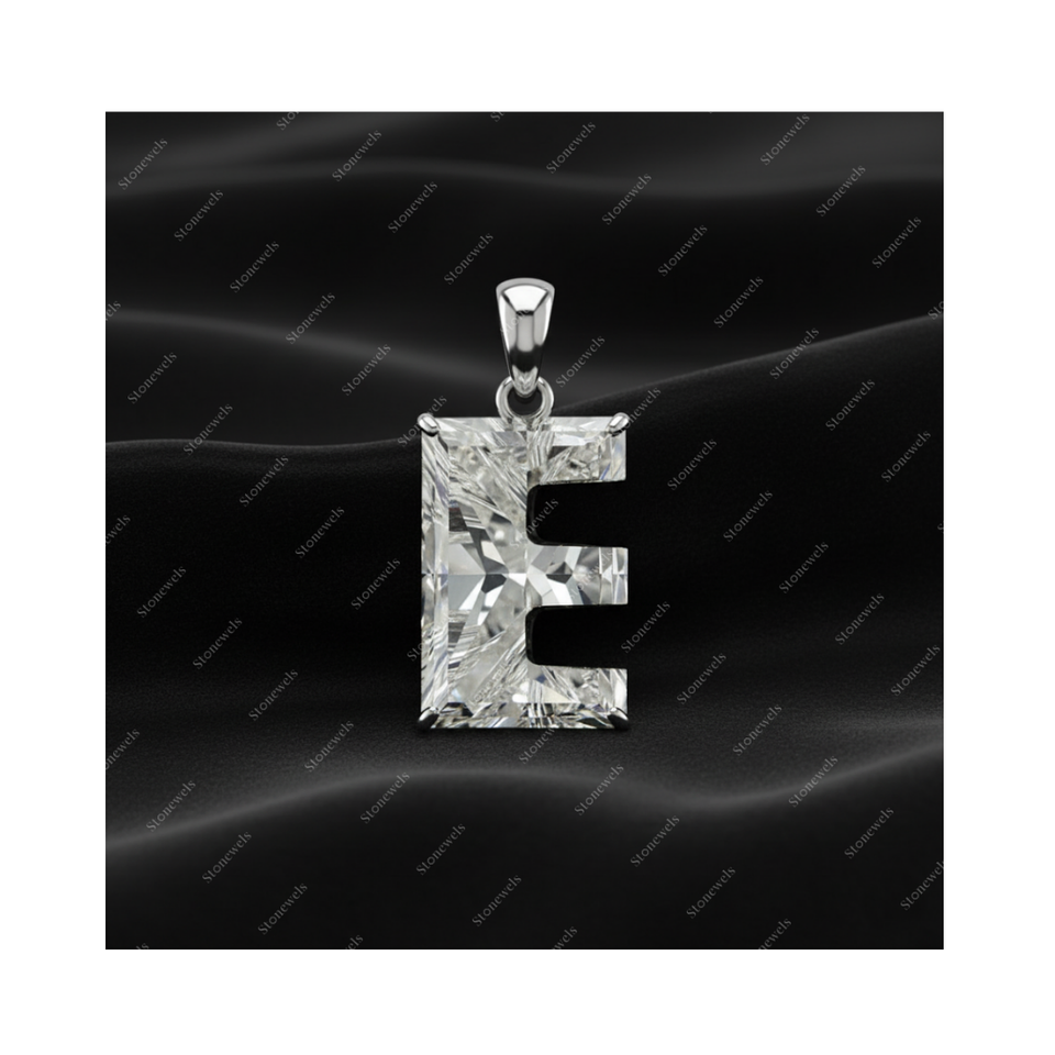 Product Name:Solid Lab Grown Initial Alphabet Letter E Shape Diamond Pendant