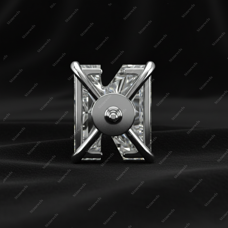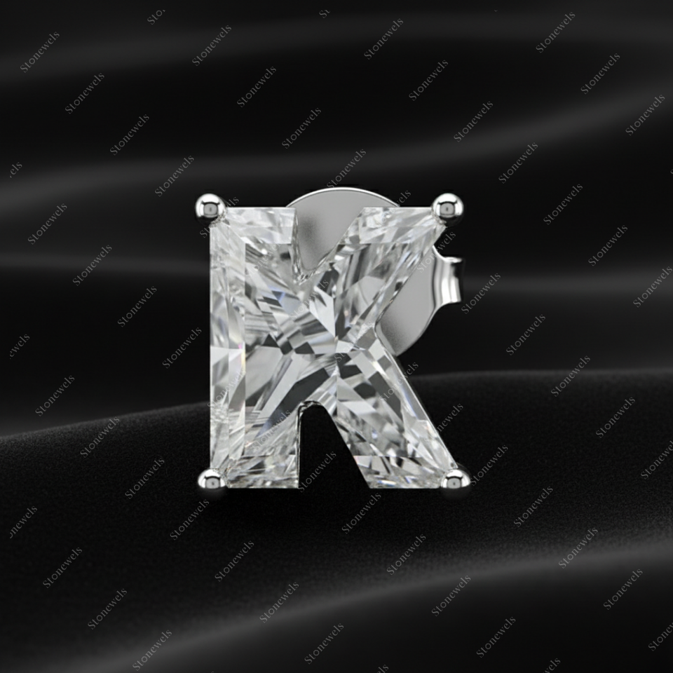 Solid Lab Grown Initial Alphabet Letter K Shape Diamond Earring