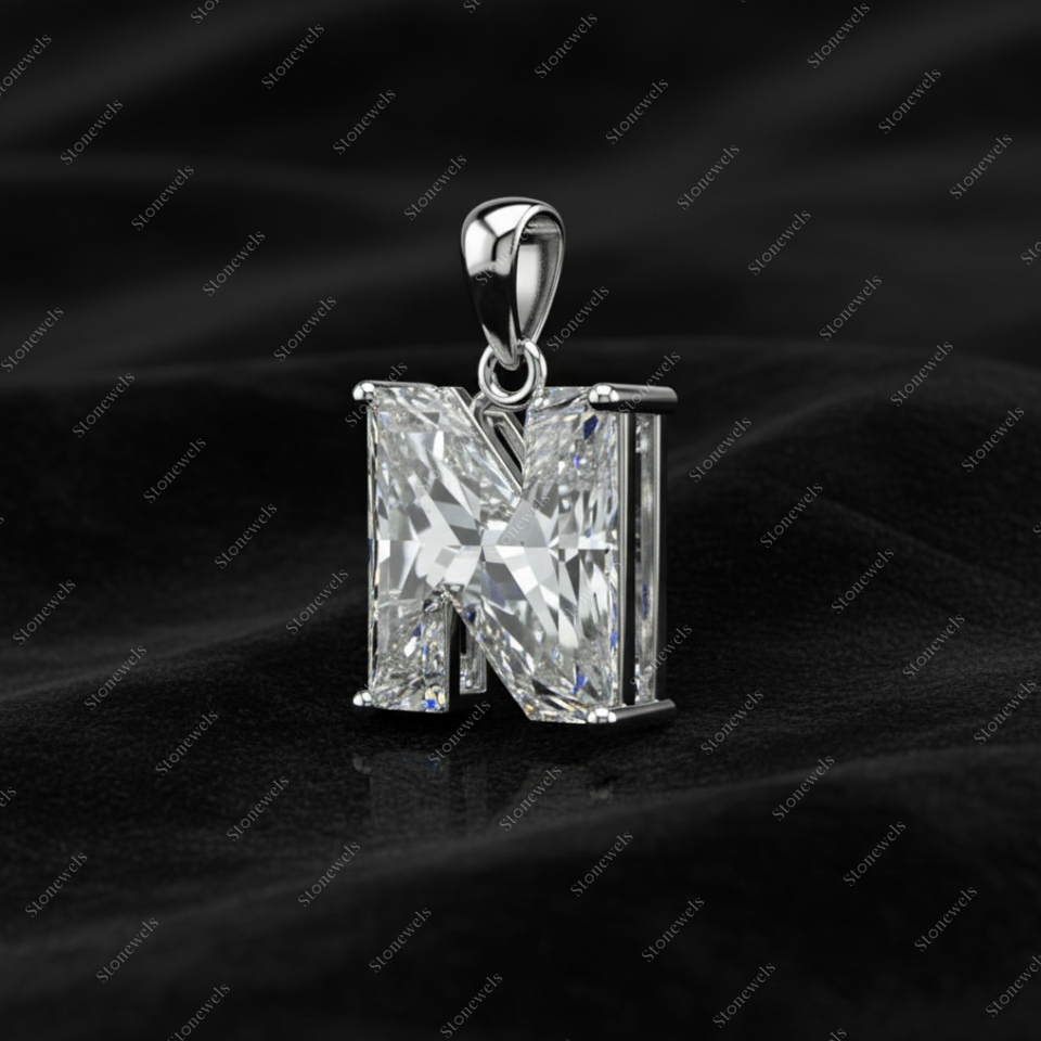 Product Name:Solid Lab Grown Initial Alphabet Letter N Shape Diamond Pendant