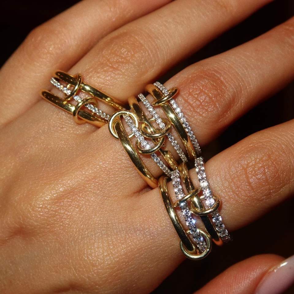Product name:10K 14K Yellow Gold Interlocking Connector Spinner Ring Stackable Band