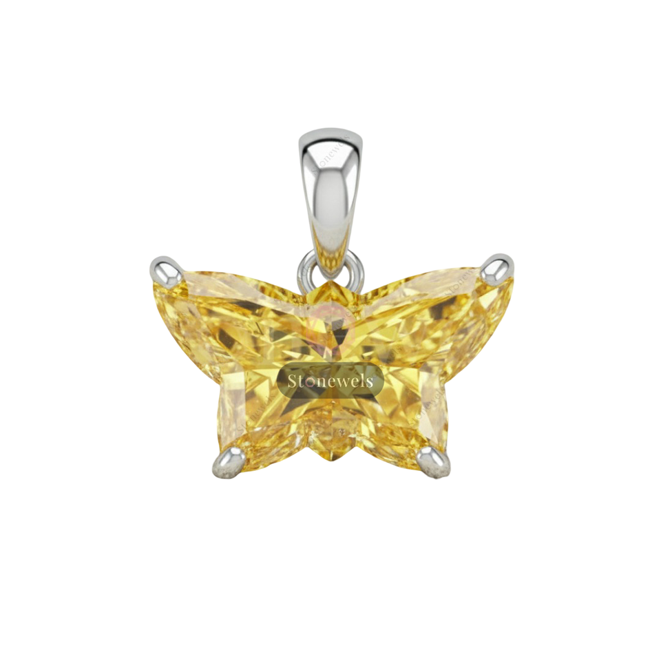 GIA IGI Certified VVS Fancy Yellow Lab Grown Diamond Butterfly Fine Jewelry Gold 925 Silver Solitaire Pendants and Charms Gift