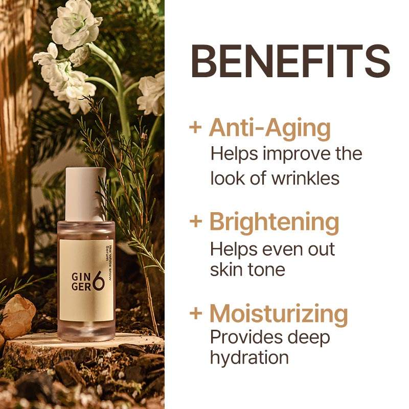 GINGER6 White Snow Peptide Serum for Anti-Aging Skin Brightening Wrinkle-Fighting with Ginger Water Niacinamide Hyaluronic Acid
