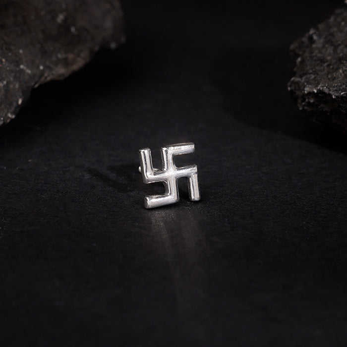 GIVA Jewellery's Trendy Silver Swastik Stud for Him Classic Cute Gold Featuring Heart-shaped Topaz Pearl Diamond Classic Stud