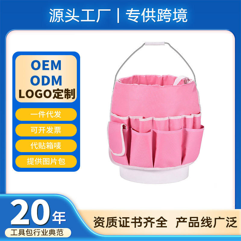GJ-0016 Tool Hanging Bag Bucket Storage 15-19 Pockets Waterproof Oxford Cloth Top Handle Garden Tool Organizer