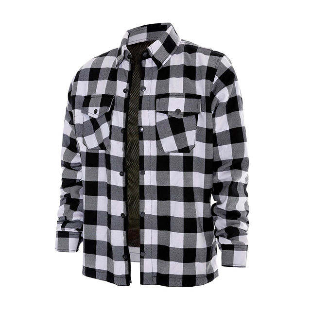 GK Men's Armored Checkered Flannel Biker Shirt Breathable % Cotton Windproof Flame-Retardant Multiple Storage Pockets CE